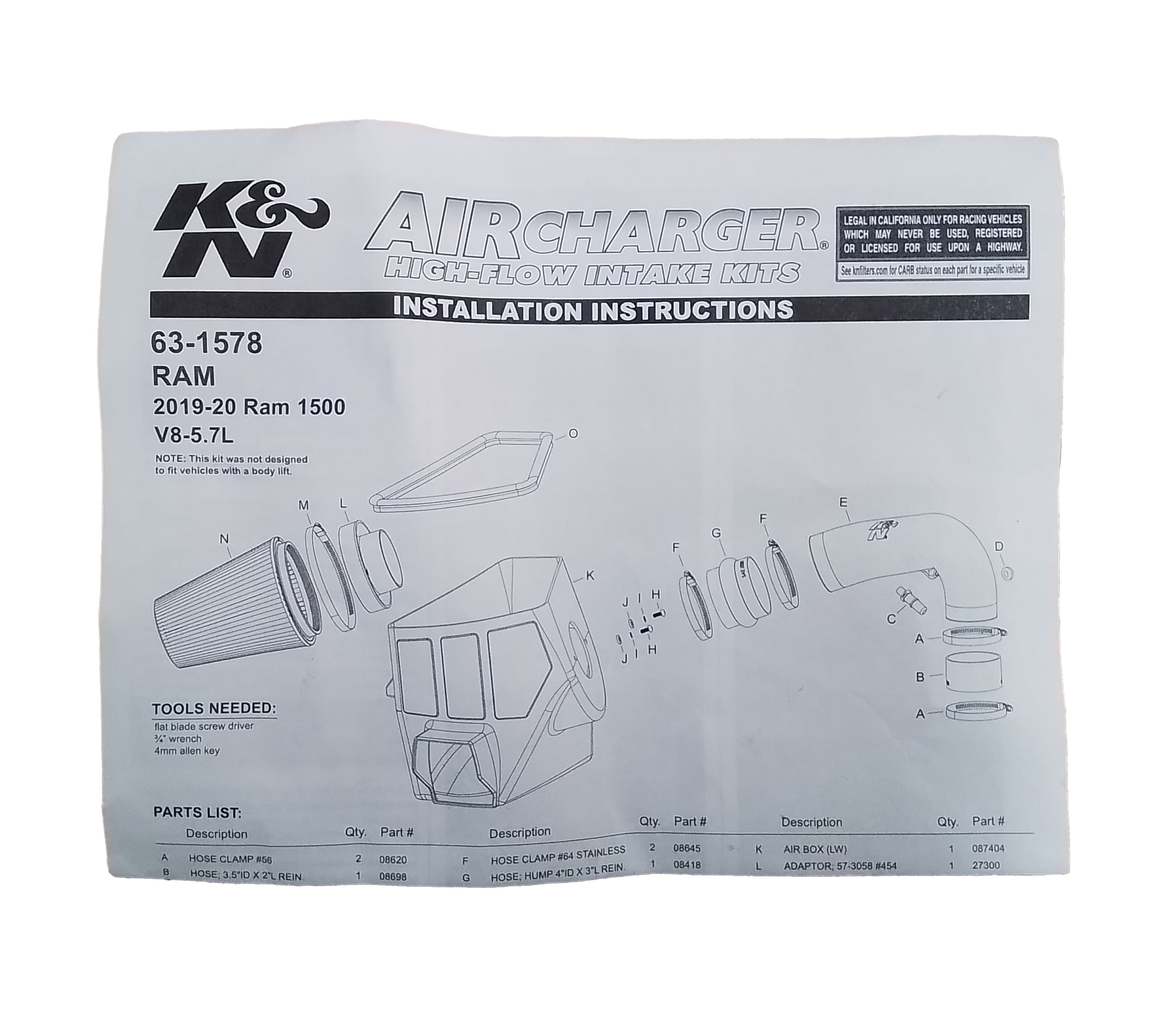 KIT AIR CHARGER HIGH FLOW